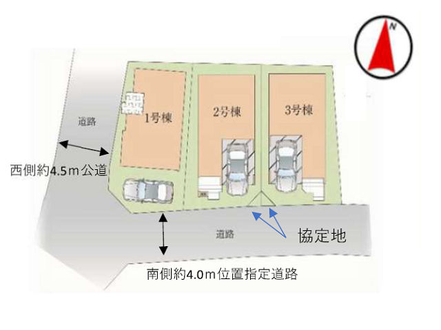 南 4m(幅員)私道 西 4.5m(幅員)公道