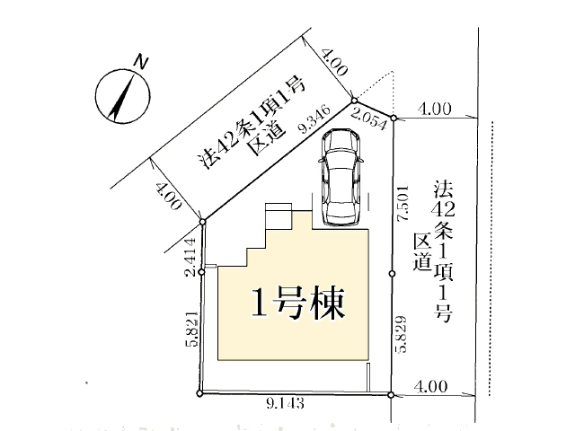 北東 4m(幅員)公道 北西 4m(幅員)公道