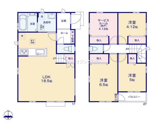 東京電力・公営水道・本下水、都市ガス、10年保証付き,バリアフリー、フラット35利用可、耐震等級3級(最高等級)、住宅性能評価書取得、2階建、4LDK(3SLDK)、LDK18.5帖、完成物件