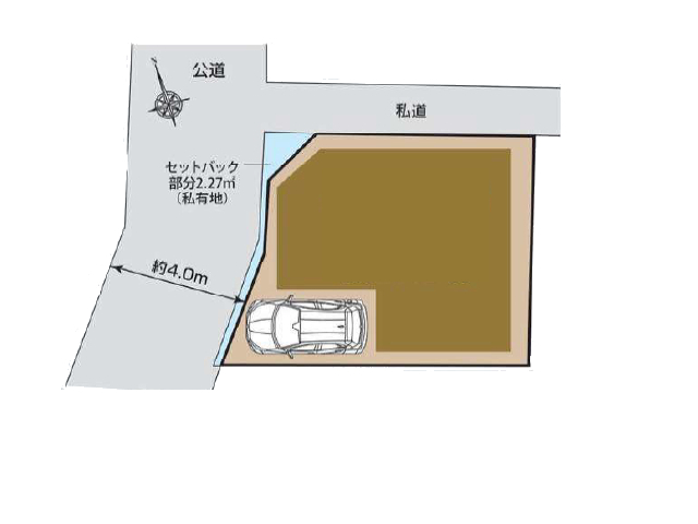 西 4m(幅員)公道 北 0m(幅員)私道